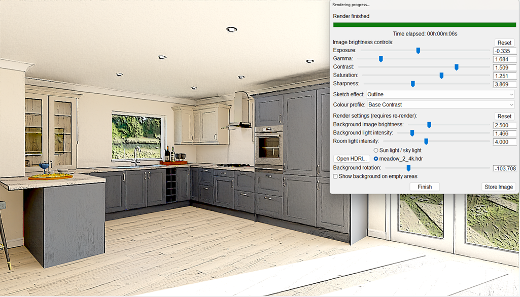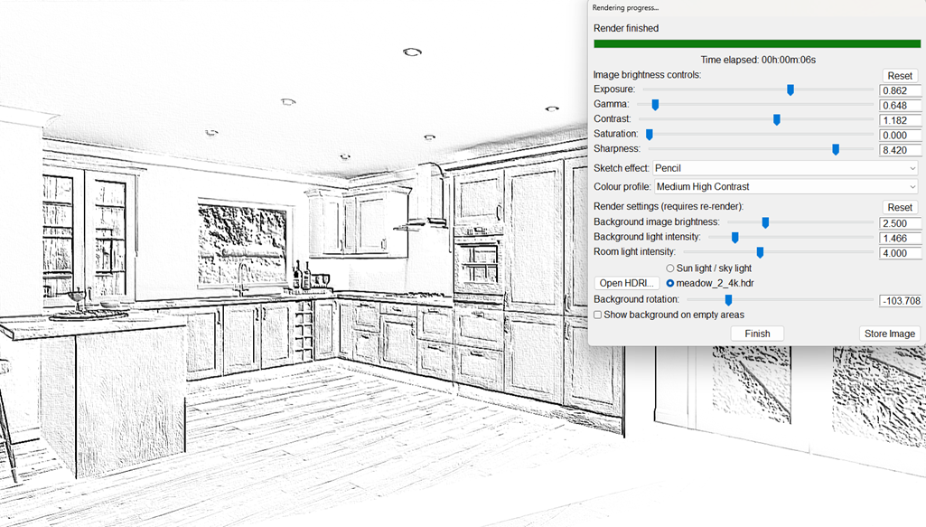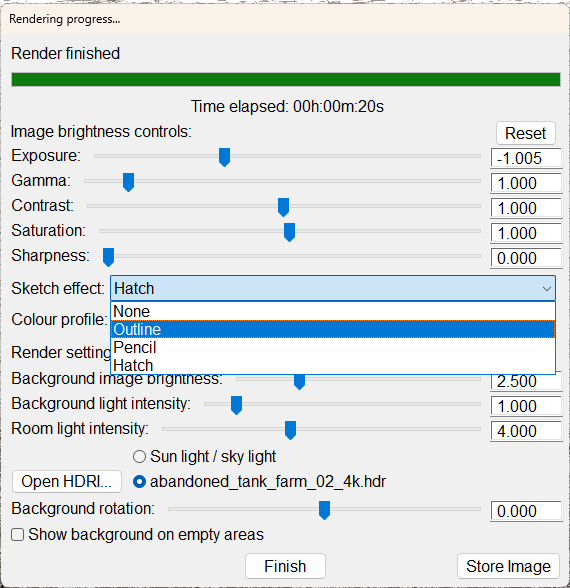 2. In the Render Progress window, simply select 'Sketch Effect' and choose from one of the new options. This will then apply your chosen filter to the image (this does not require a re-render).