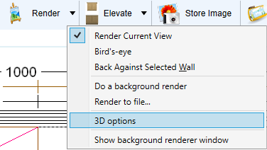 2. Select the '3D options' menu within the render drop down arrow.
